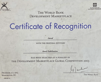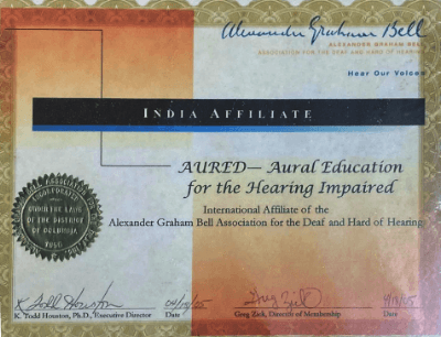Auditory Verbal Therapy which even the judges were unaware of. AURED was given a Certificate